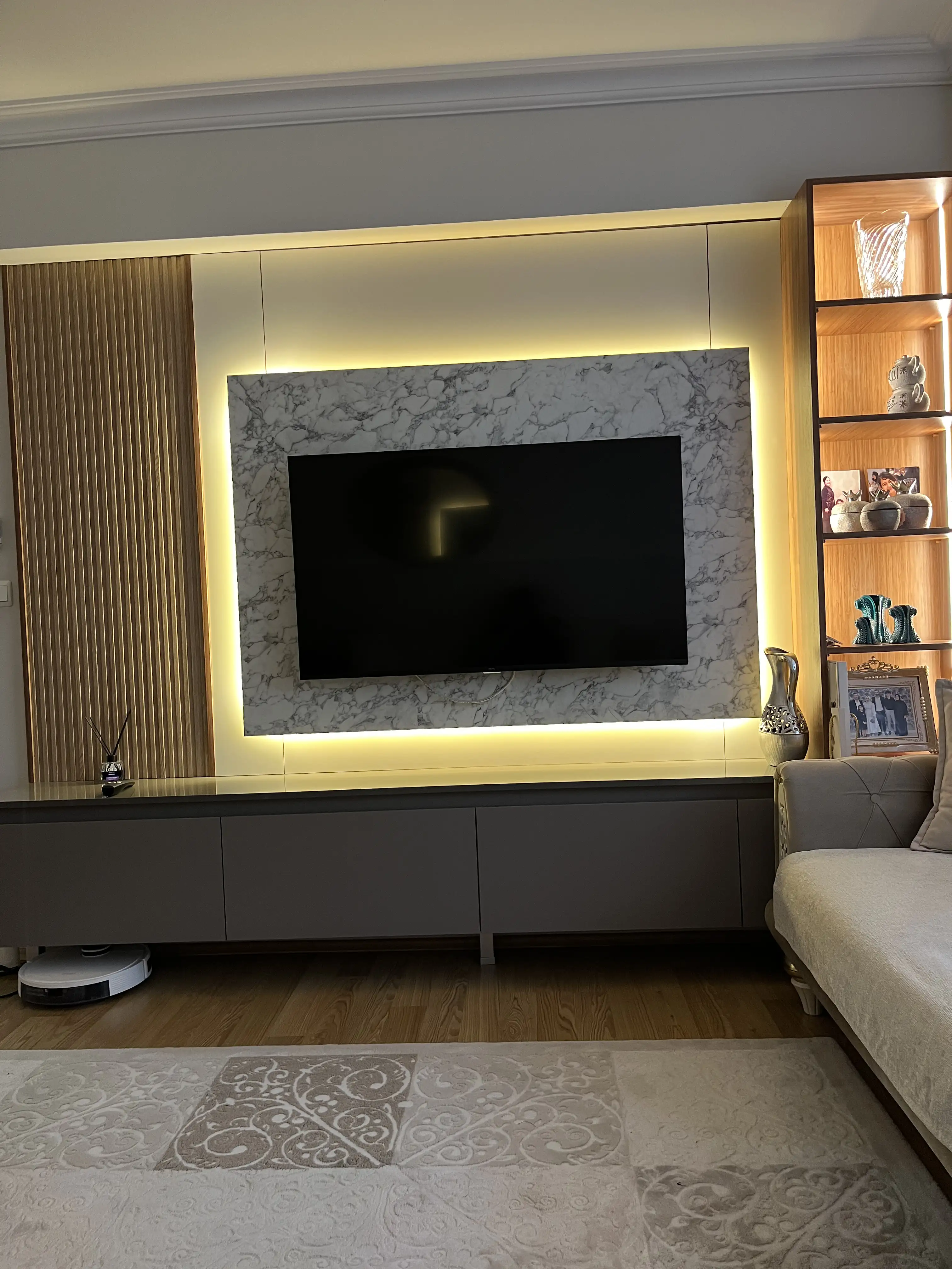 Salon ölçülerinize ve dekorasyon stilinize uygun TV üniteleri tasarlıyoruz. Kablo gizleme, raf ve depolama alanlarıyla estetik ve düzeni bir arada sunuyoruz.